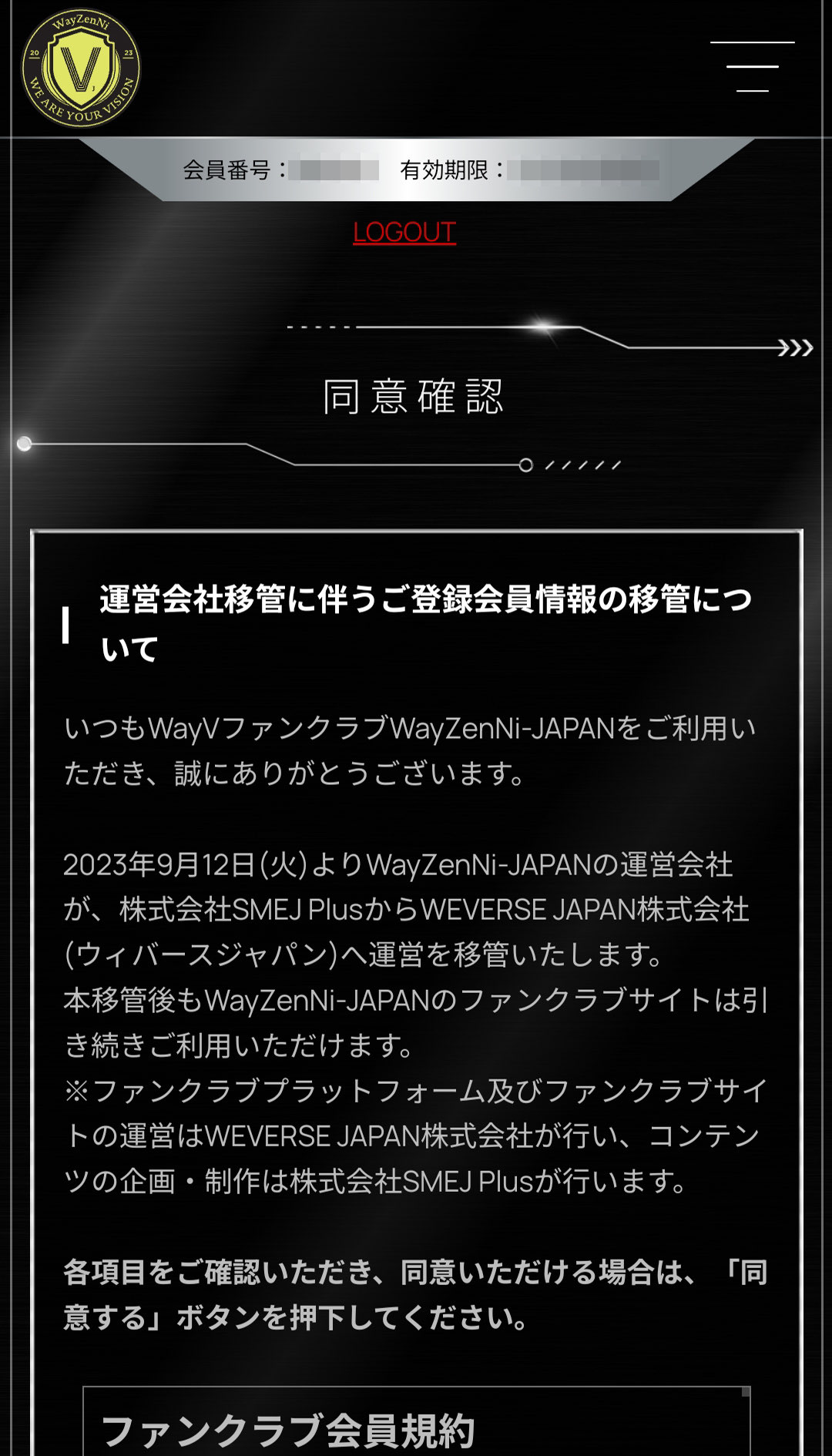 2023年9月10日(日)までにファンクラブにご入会された方は、2023年9月12日(火)以降全てのファンクラブサービスをご利用いただくために、Weverse Accountとの連携が必要となります。